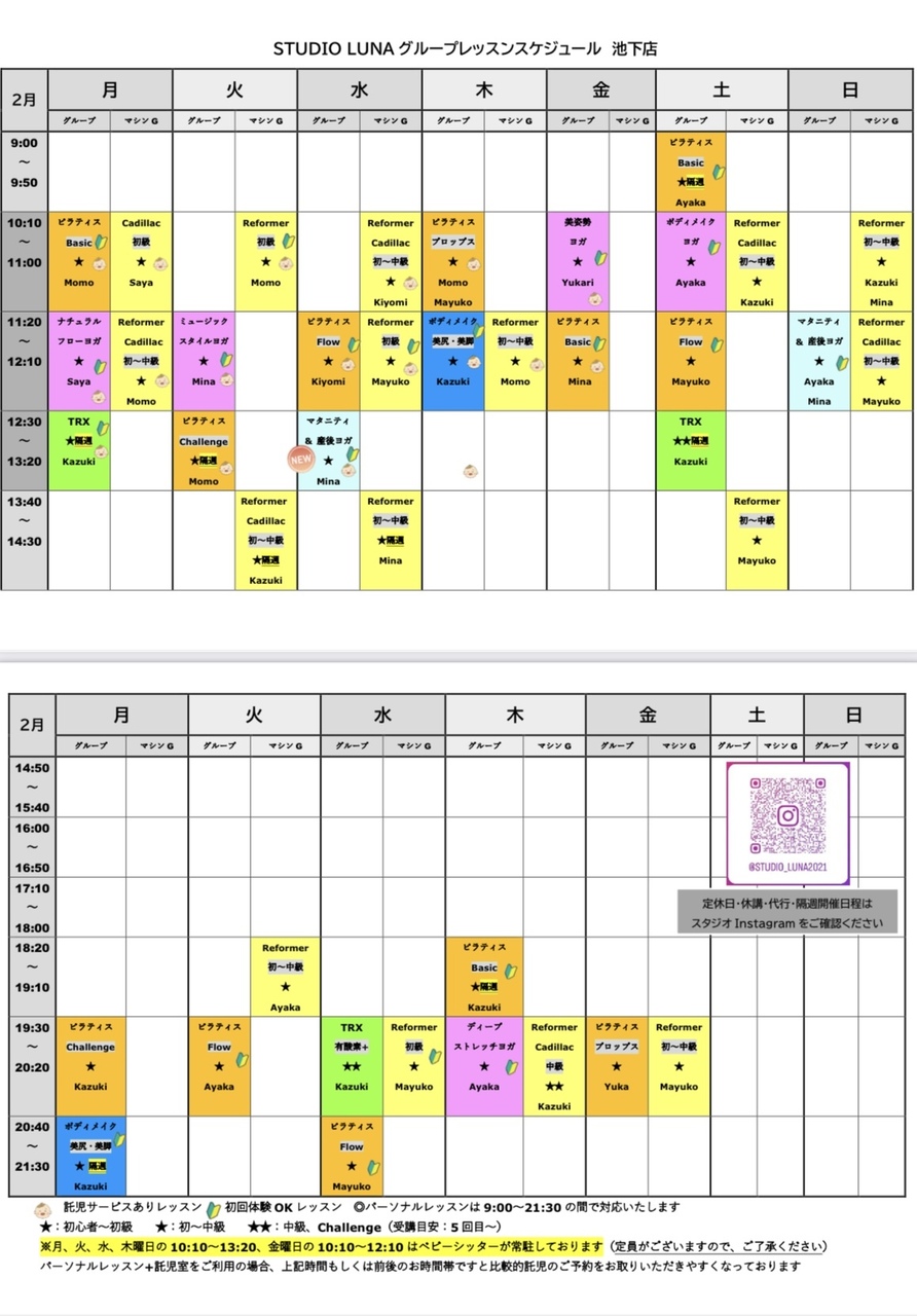 ☆2月スケジュール&休講・代行・隔週開催情報☆