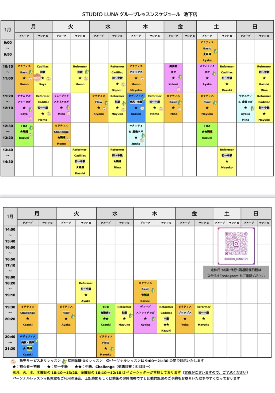 ☆1月スケジュール&休講・代行・隔週開催情報☆