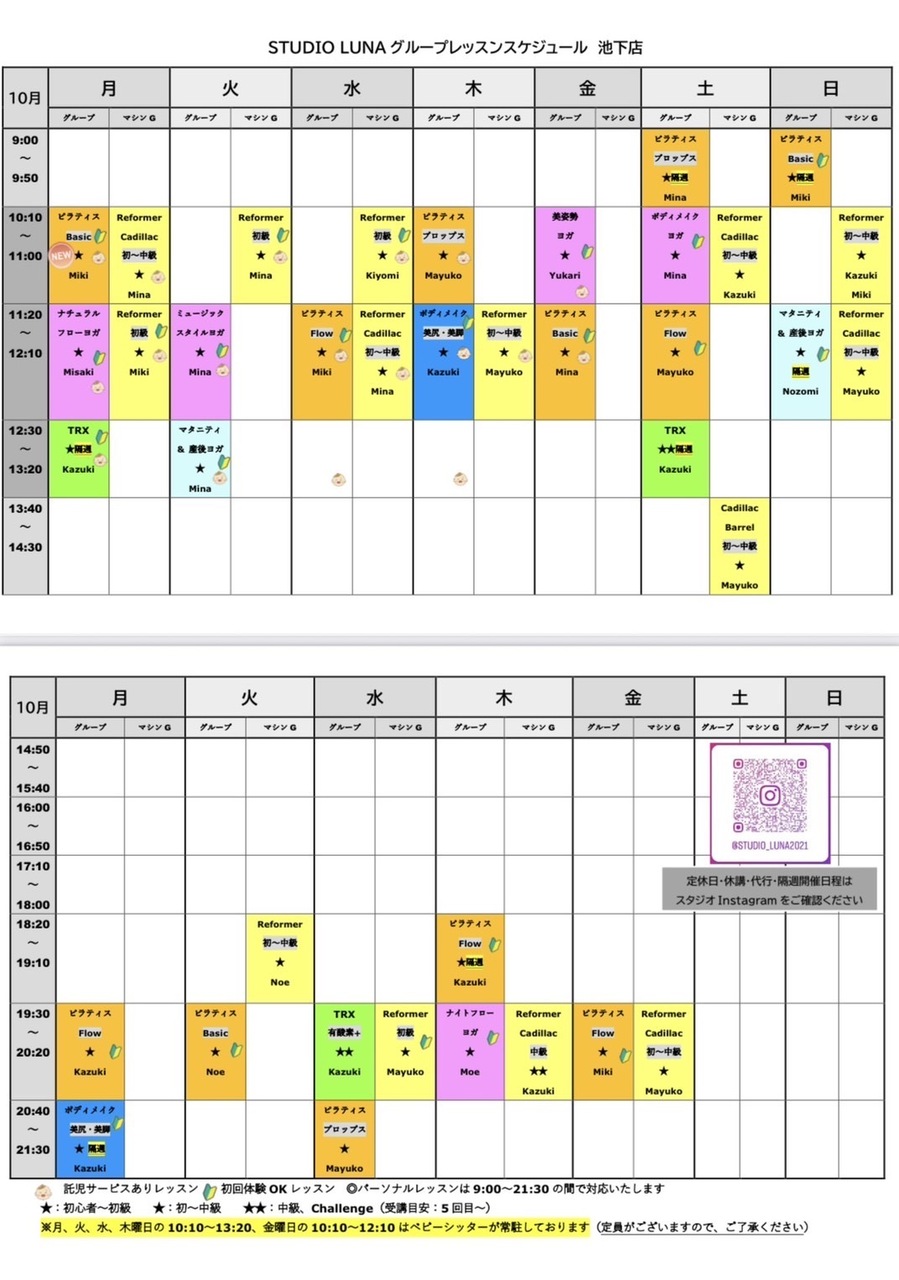 ☆10月スケジュール&休講・代行・隔週開催情報☆