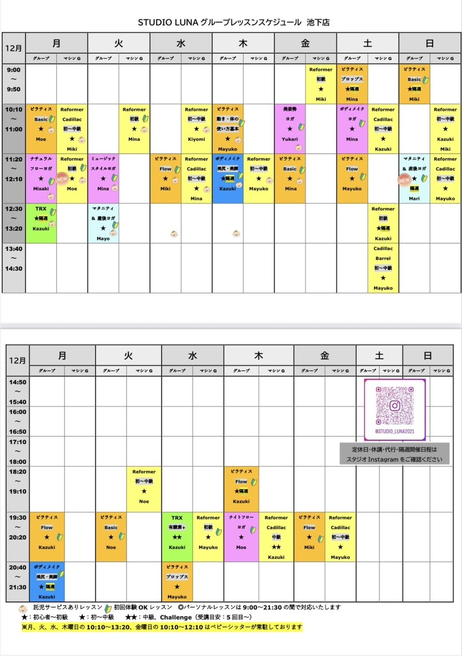 ☆12月スケジュール&休講・代行・隔週開催情報☆