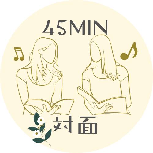 ※所要時間が50分となっておりますが、次のレッスンとの入れ替え時間を考慮しての設定となっております。実質のレッスン時間は開始時刻より45分となりますのでご注意ください。