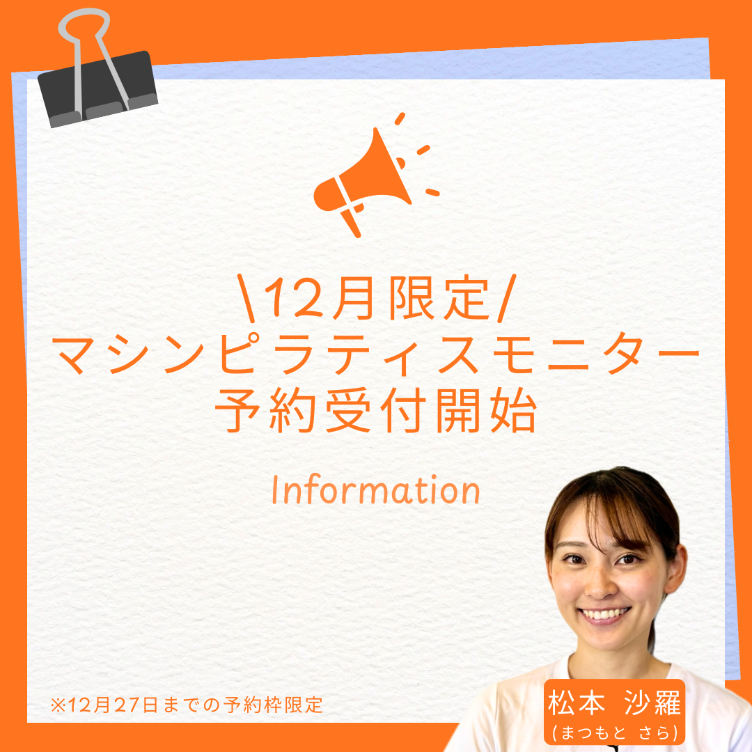【12月限定】マシンピラティスモニター募集のお知らせ