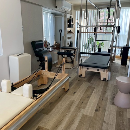 ピラティスマシン(リフォーマー・キャデラック・バレル・チェア)を使用した60minのオーダーメイドピラティスレッスンが受けられます。