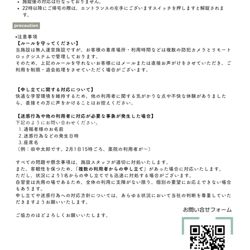 ※当施設は無人運営の施設です。