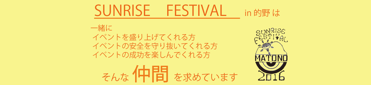 本日より、サンライズフェスティバルin的野のボランティアを募集致します。