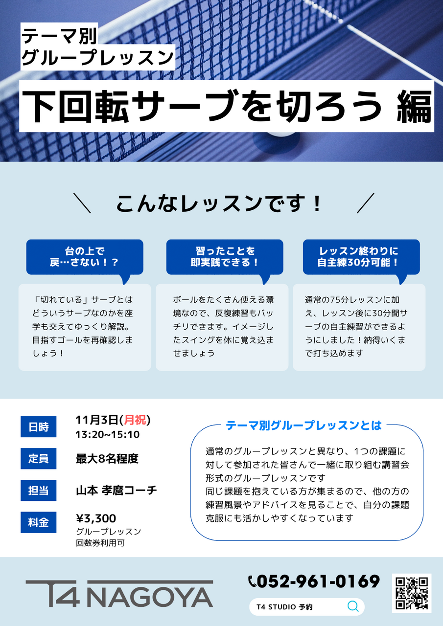 11/3(月祝)テーマ別グループ「下回転サーブを切ろう」編
