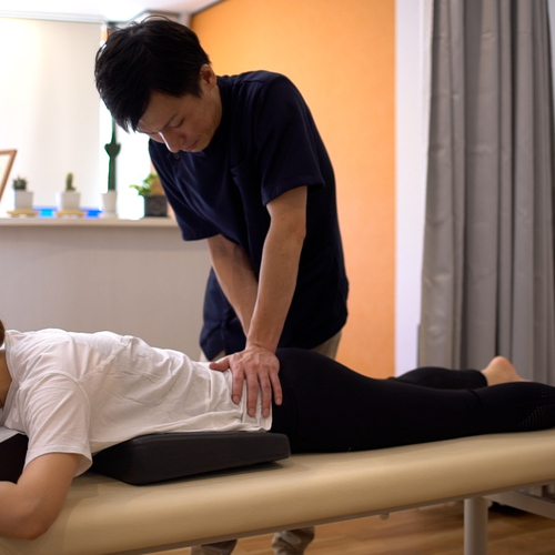 ピラティスレッスンの前に骨盤や背骨・首の矯正を行います。