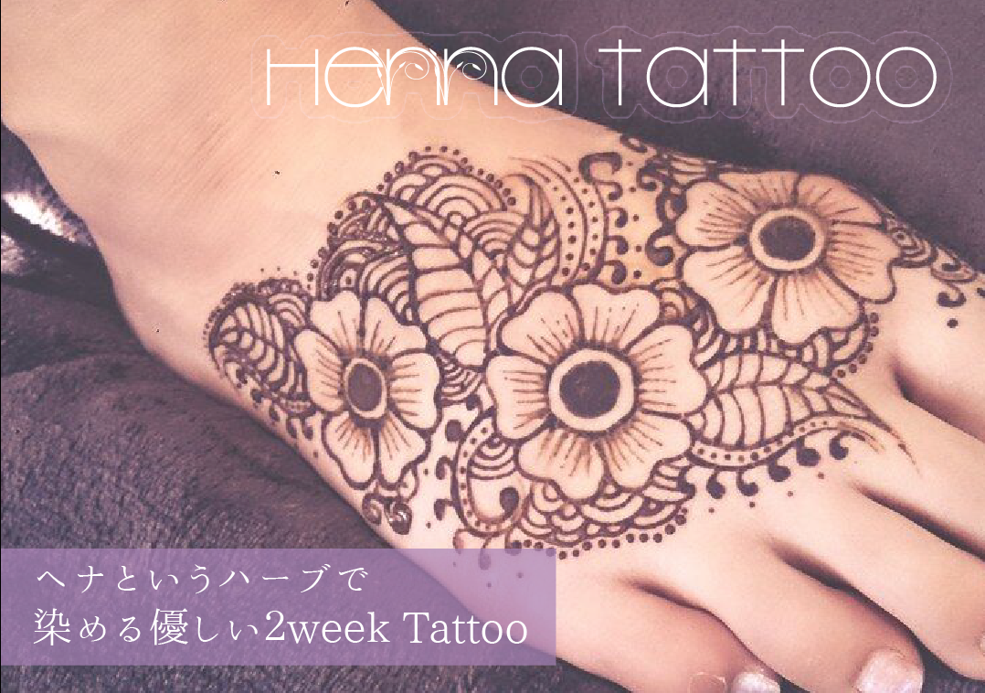 ヘナの葉を乾燥させて粉末にしたものを溶き、ペースト状にして描きます。ペーストを剥がすと始めは明るいオレンジ色に染まり、2〜3日後に最も綺麗な茶色に発色し10日〜2週間ほどで肌の代謝により消えていきます。
