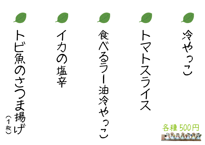 おつまみ 500円メニュー