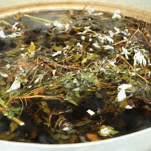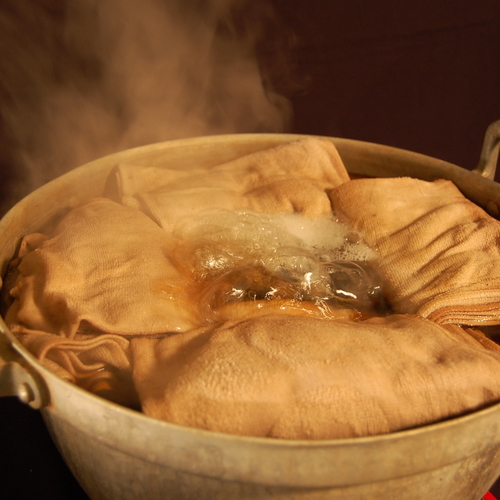 塩漬けヨモギと一緒にぐつぐつ煮たタオルで・・・