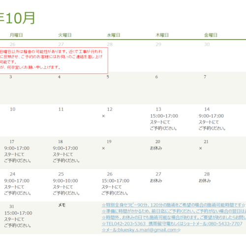 2022年10月のカレンダー