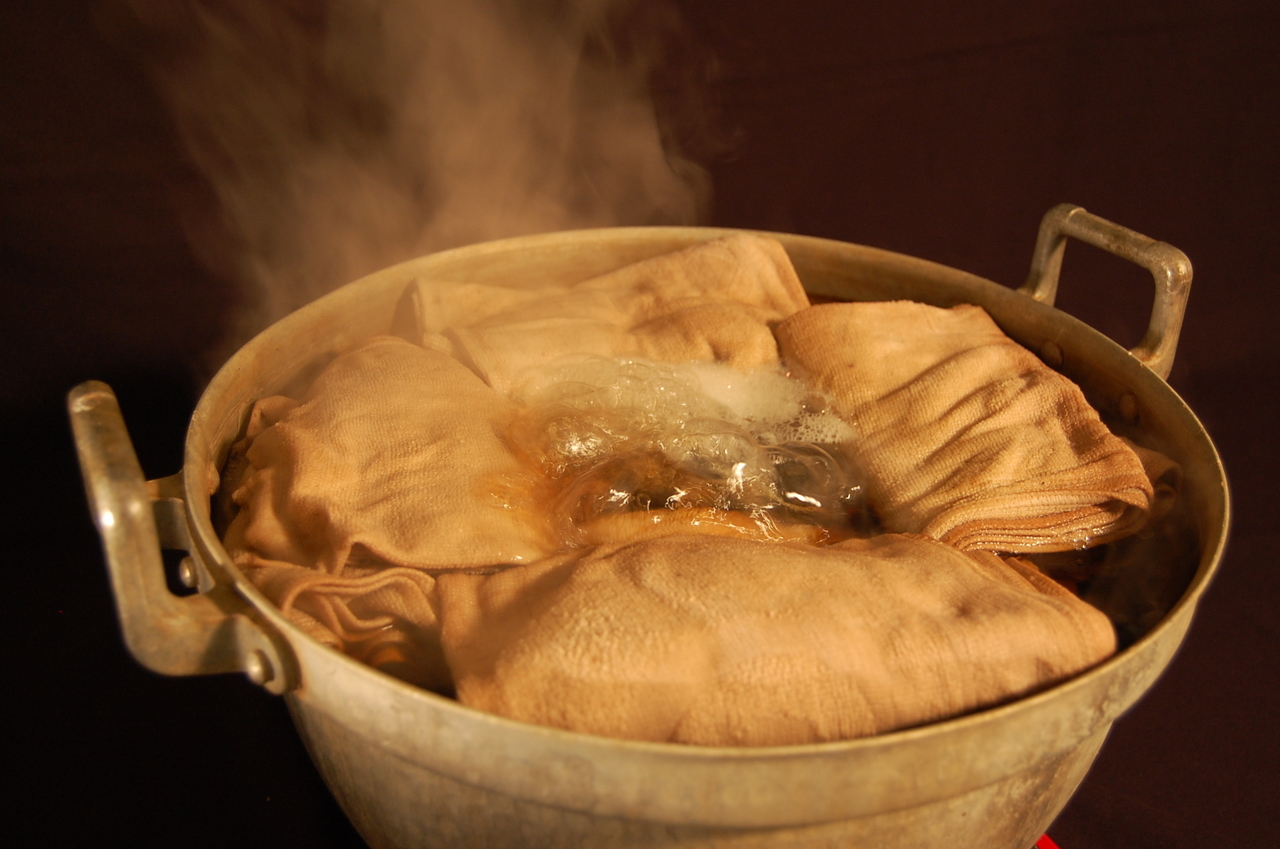 それは、塩漬けヨモギをメインにした和ハーブと一緒にタオルを煮込み、