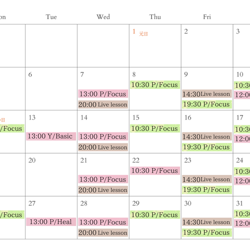 毎月5日夜20:00に翌月のスケジュールをアップいたします