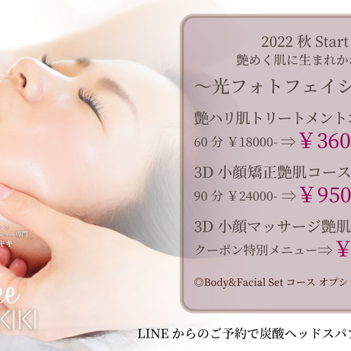 世界130ヶ国で展開されている、フランス製高級スパブランド「Esthederm」での美肌プログラムエステティックをベースに【ESTHEDERM reve de Salon 2020】でグランプリを受賞したエステティシャンがお肌のお悩みやお時間・ご予算に合わせて、施述内容、導入美容液、マシンやパックの種類などを決めていく「オーダーメイド」スタイルで、あなただけの美肌プログラムをご提案。