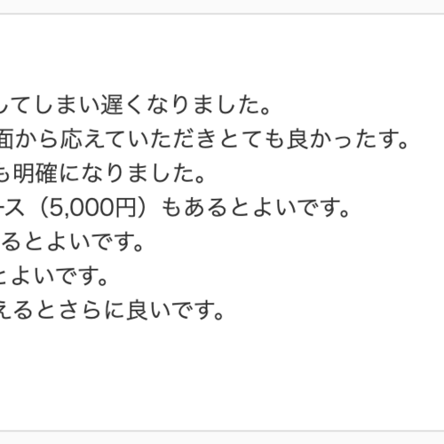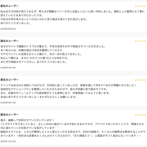 ※2025年11月より予約ページURLが変更となったため、それまでにいただいたレビューをフォトギャラリーに掲載しています。個別そうだんの内容は同じですので、参考にしていただけると幸いです。