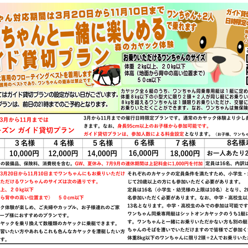 ワンちゃんと一緒に楽しめるガイド貸切プラン(3月20日から11月10日まで)