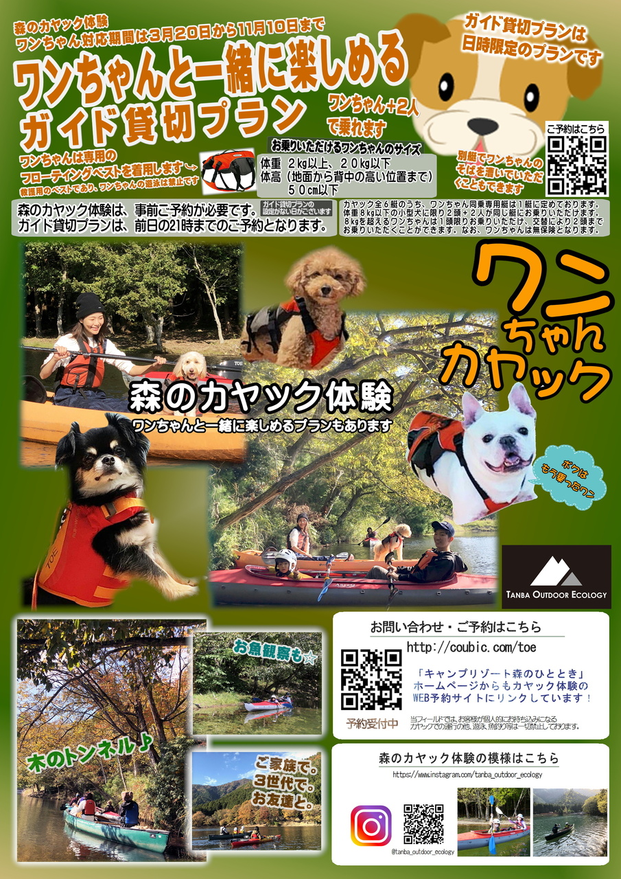 森のカヤックはワンちゃんと一緒に楽しめます
