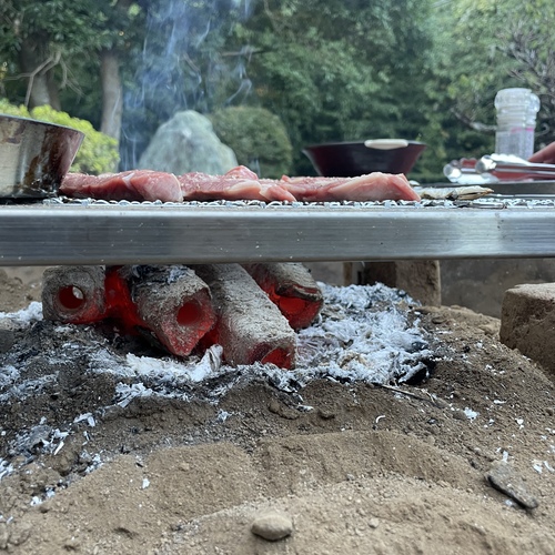 薪割り火起こしから、焚火で炭起こし、囲炉裏で原始焼きを楽しむことが出来ます。