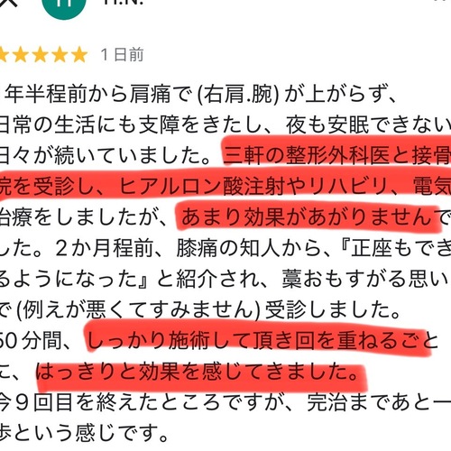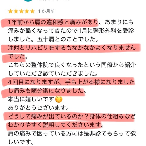 【通院レポ】肩の動かした痛みが改善しました 肩痛/五十肩/豊中/曽根