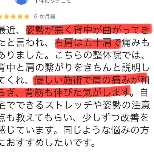 【通院レポ】背中の丸まりと肩痛が改善 五十肩 豊中/曽根