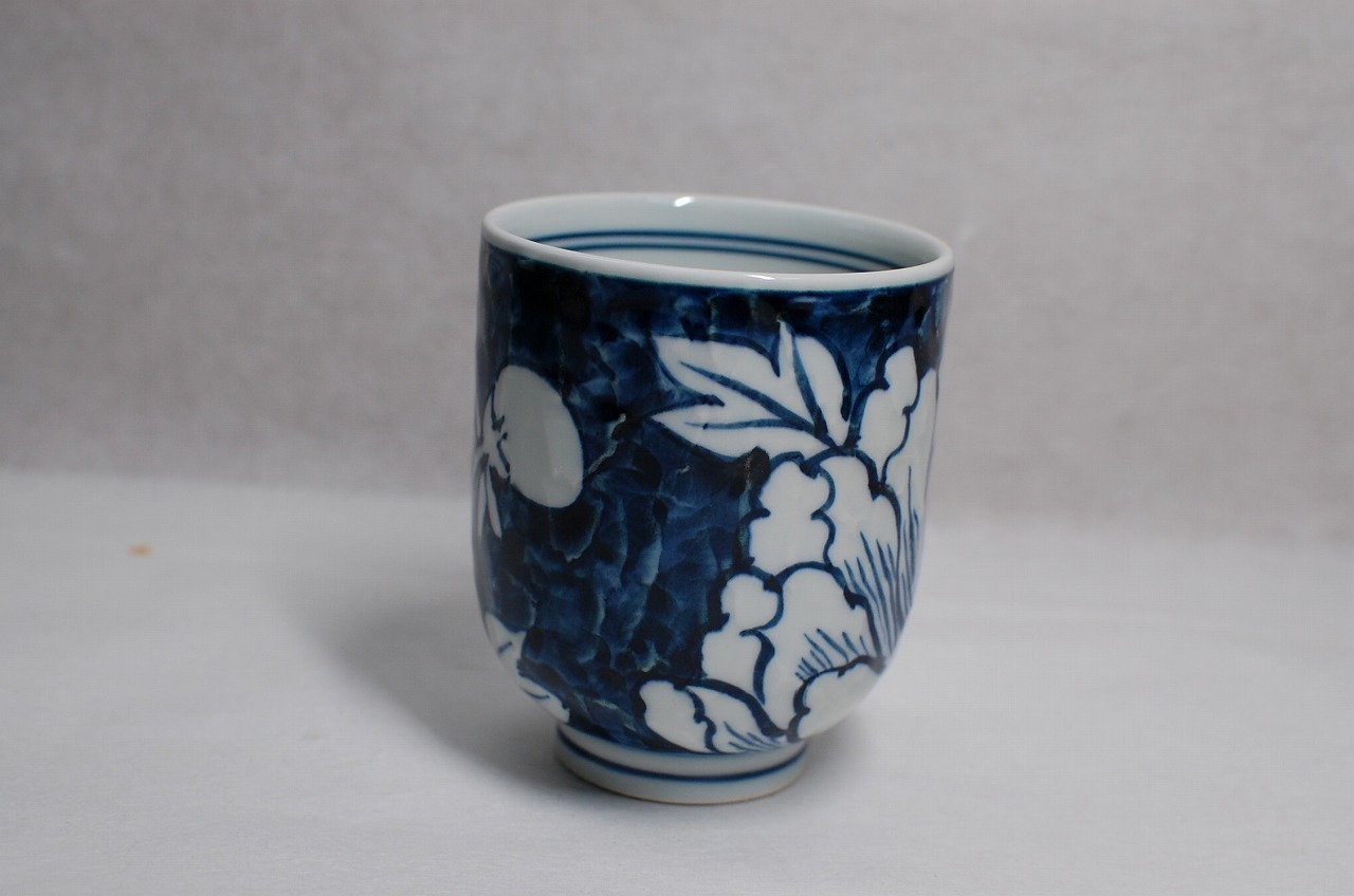 古染外濃筋牡丹文彫湯呑