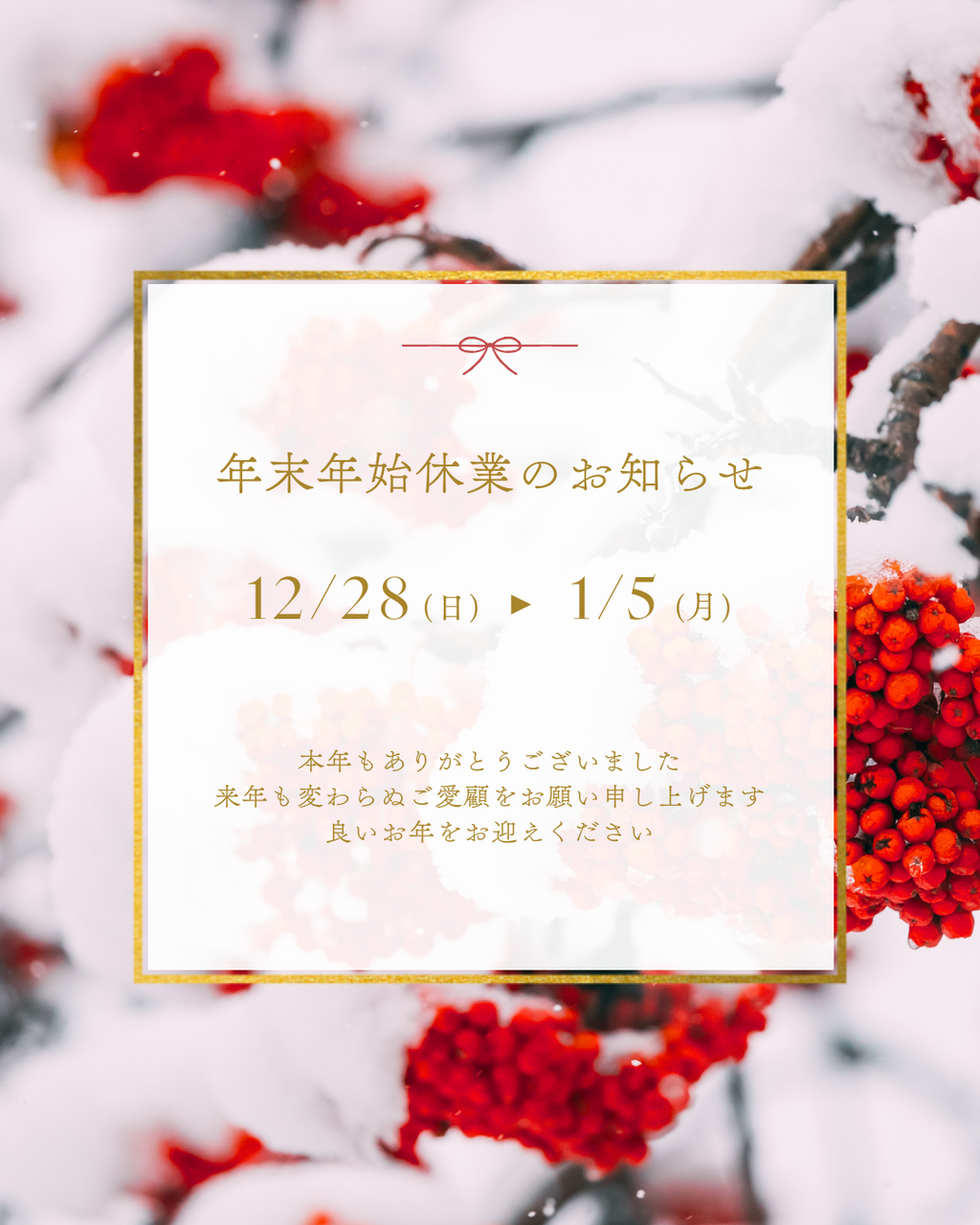 年末年始休業日のお知らせ