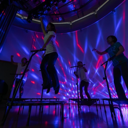 暗闇で行うことで人目を気にせずマイペースにおこなえ、弾むことでカロリー消費倍増。