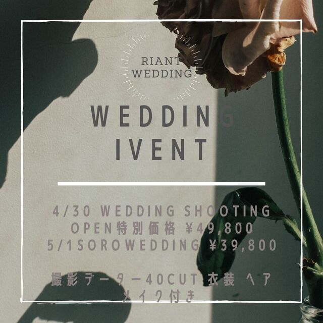 4月30日ウェディング前撮りイベント¥49800
