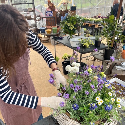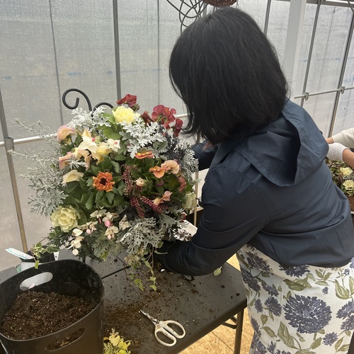 苗も素敵なものばかりで豪華なハンギングリースが出来上がりました!丁寧にわかりやすく教えていただけて、またおしゃべりも盛り上が亮子とても楽しい時間でした(^^)