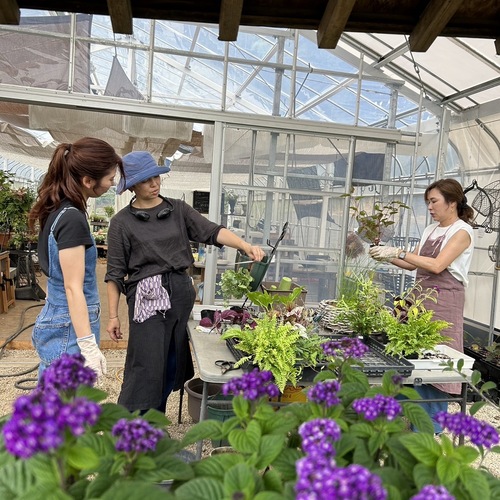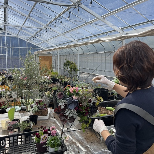 寄せ植え専門店「山庭」で開催している寄せ植えレッスンは、それぞれの個性がきらりと光る作品づくりを大切にしています。