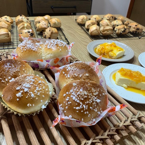 ビスマルクパンを焼きました。家族の数に合わせて、3つに分けて焼きましたが、ボリュームもあって満足しました。いつも、いろいろな焼き菓子やサラダ、デザートなど、とても学ぶことが多いです。是非次回も焼きたいと思う気持ちでまた一杯になります。