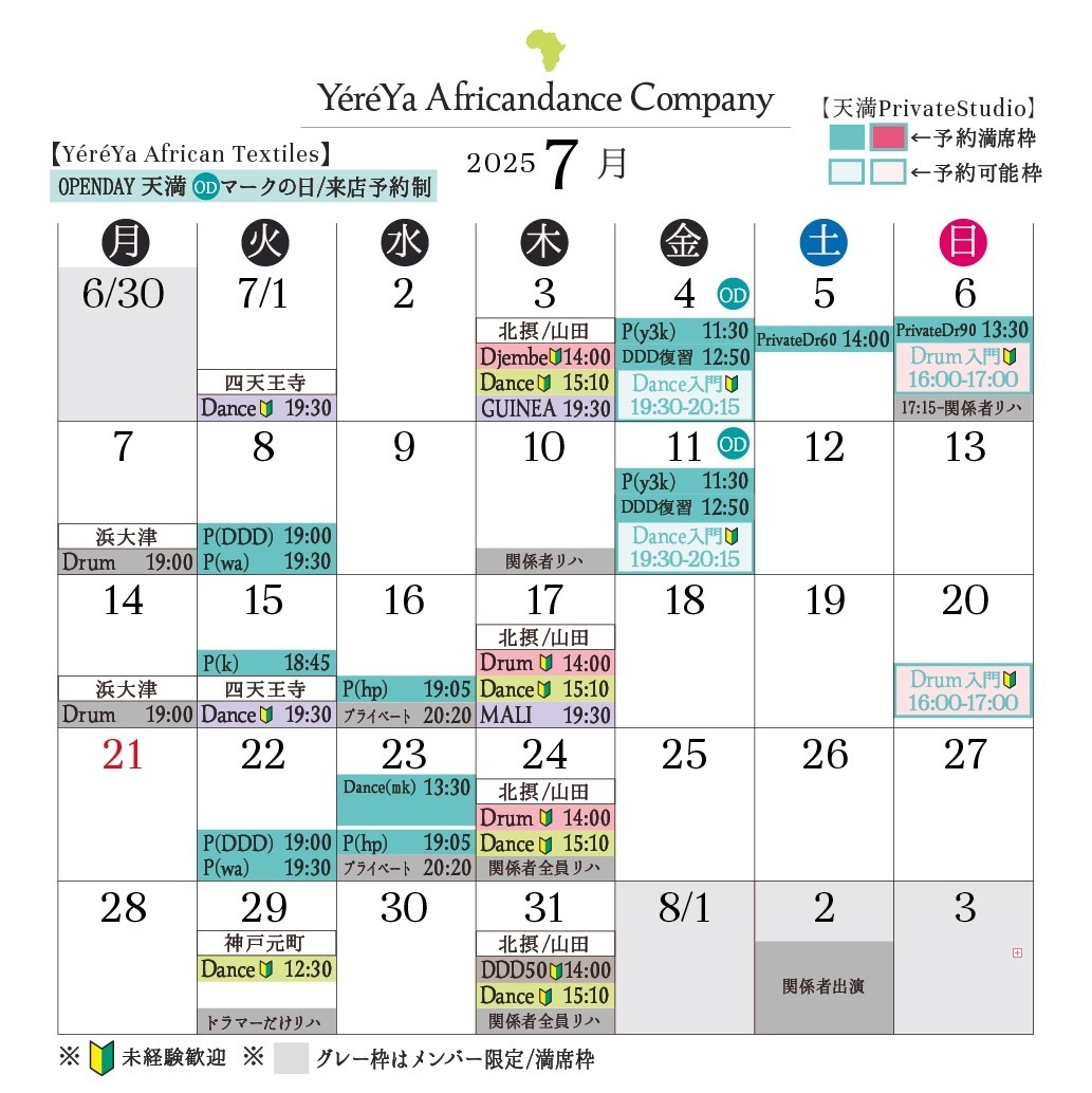 2025年7月カレンダー
