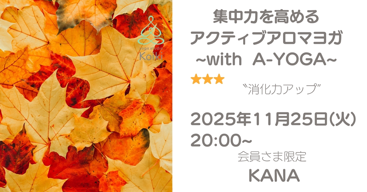★★★集中力を高めるアクティブアロマヨガ〜with A yoga〜
