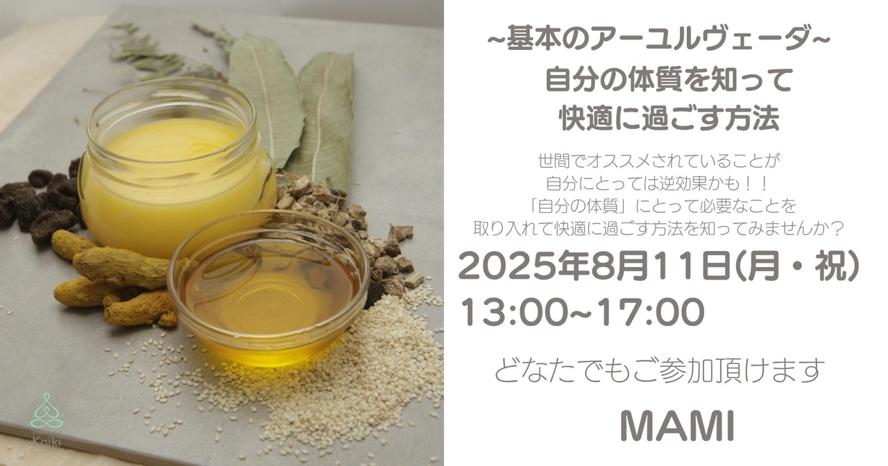 アーユルヴェーダで自分の体質を知ろう!〜日々の生活をより快適に過ごす基本の方法〜