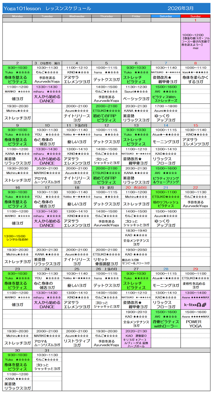 2026年3月スケジュール