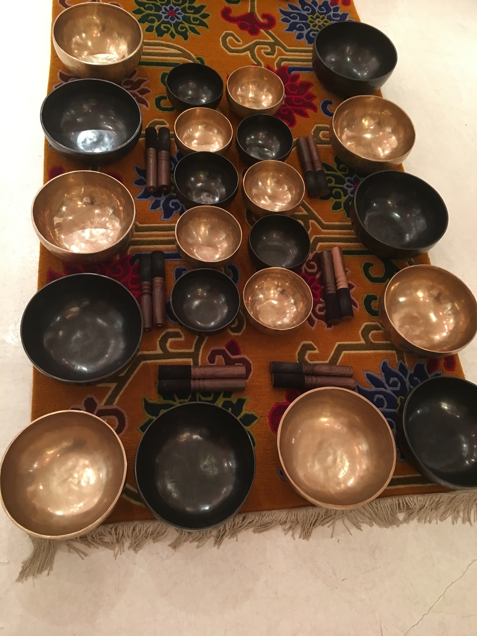 一度に高音から低音までの音が 振動として聴こえる音のことです。ヨガの世界では、テインシャや、クリスタルボウル、シンキングボウルなどを使って倍音を楽しみます。ヨガのイエでも テインシャは使用していましたが、自分で入念に音のチェックと相性のチェックをし、ようやく シンキングボウルが我が家へやってまいりました! 実は 私の体調が 少しだけ 悪かったので(喉が痛い。。。)心配していましたが、それでも とても響く元気なシンキングボウルに出会いました。