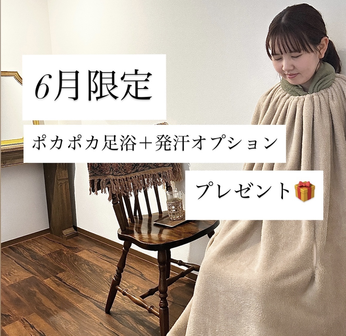 【6月限定】ポカポカ温まる足浴+発汗オプション【無料】