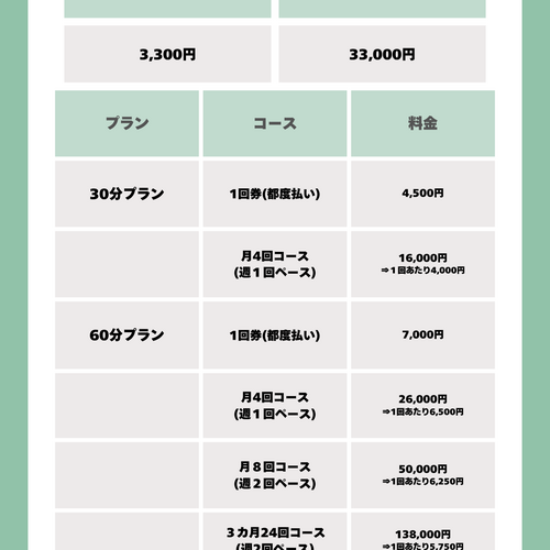 継続して通っていただけるように、低価格の料金設定にさせていただいてます。