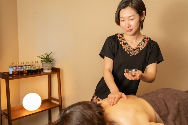 「マルマ(ツボ)」を刺激しながら、温かいハーブオイルで全身を丁寧に、