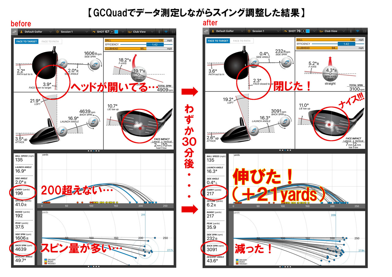 【GCQuadでデータを見ながらスイング調整してみた結果】