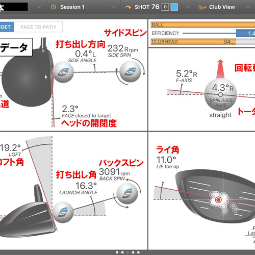 クラブ軌道や入射角、フェイスの開き等々、数字で測ってもらえて今後の練習の参考になりました。