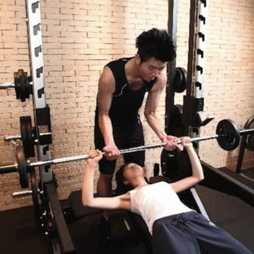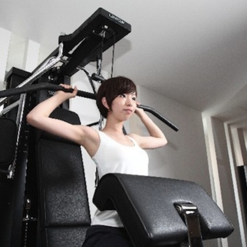 重量を回数持ち上げるために、鍛えたい部位から重量を少し逃して持ち上げています。