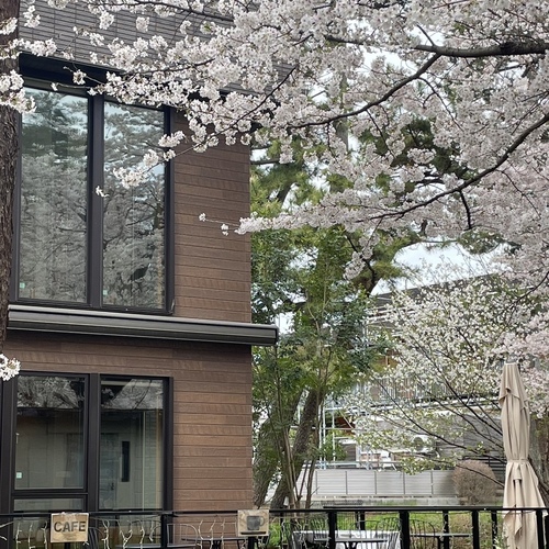 caféの2階から見える季節の移り変わりもお楽しみください。