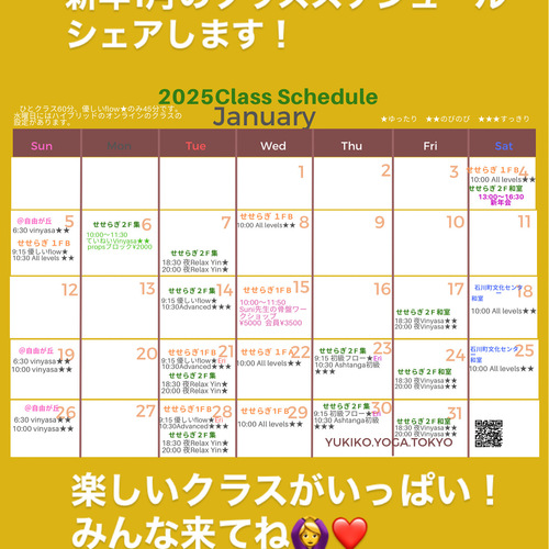 新年1月のクラススケジュールをシェアします!